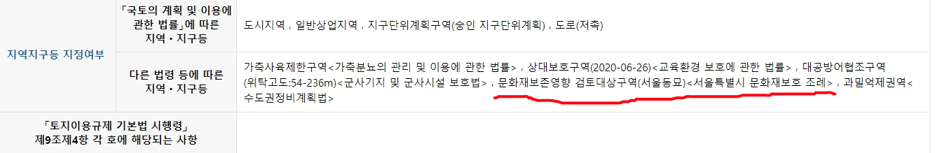 사이트 주변 문화재가 속한 보호구역경계 / 문화재보호구역 검토대상구역 범위를 확인할 수 있다. 여러 제한사항을 같이 확인할 수 있으니 참고하도록 하자. 단, 여기에도 모든 내용이 들어있지 않을 수 있으니 가장 확실한 방법은 건축법과 문화재보호법에서 관련 근거를 찾아가는 것이다.