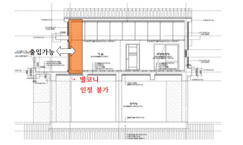 2) 출입 불가 : 발코니로 인정 가능 (면적 산입 안 함)