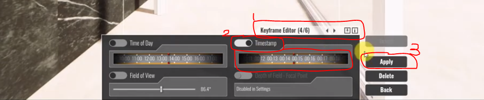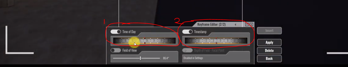 Keyframe Editor에서 Timestamp 와 Time of Day를 설정함으로 연출할 수 있다.